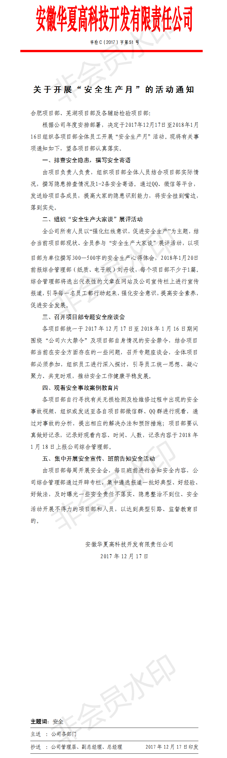關于開展“安全生產月”的活動通知
